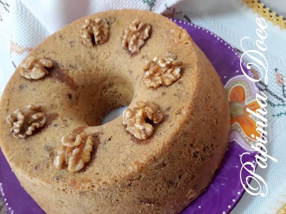 Este é o bolo de noz, que sempre fiz cá em casa, só que desta vez usei o dobro das nozes da receita original, em vez de cem, usei duzentas gramas de noz. Ficou bem guloso, como cá em casa todos adoram nozes, o bolo não durou muito.